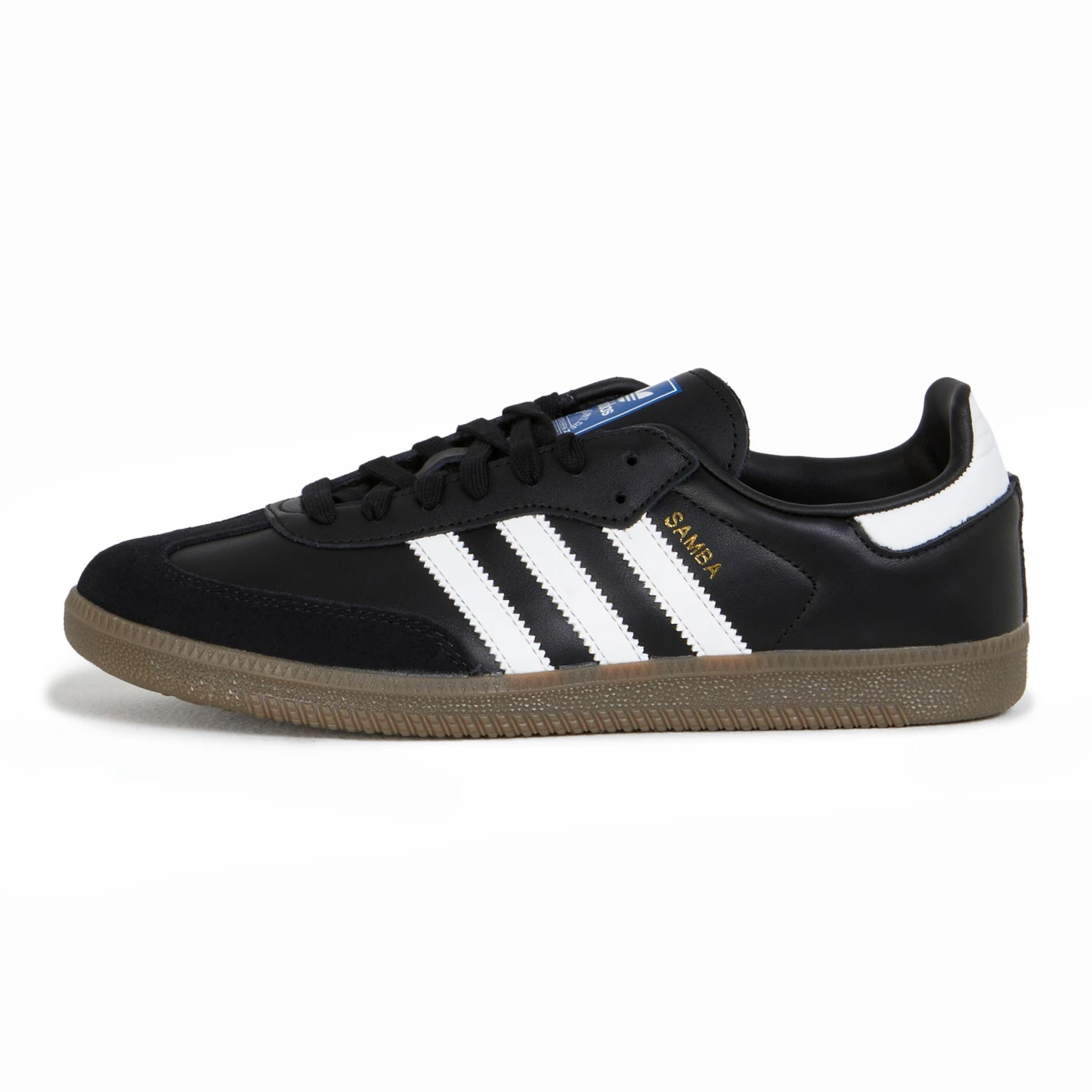 Born on the pitch, the Samba OG is a timeless icon of street style. These shoes feature a leather upper with suede overlays, a rubber outsole for durability and grip, and a soft textile lining for breathability. The iconic 3-Stripes and gold-foil Samba logo adds a touch of flair to these timeless sneakers.