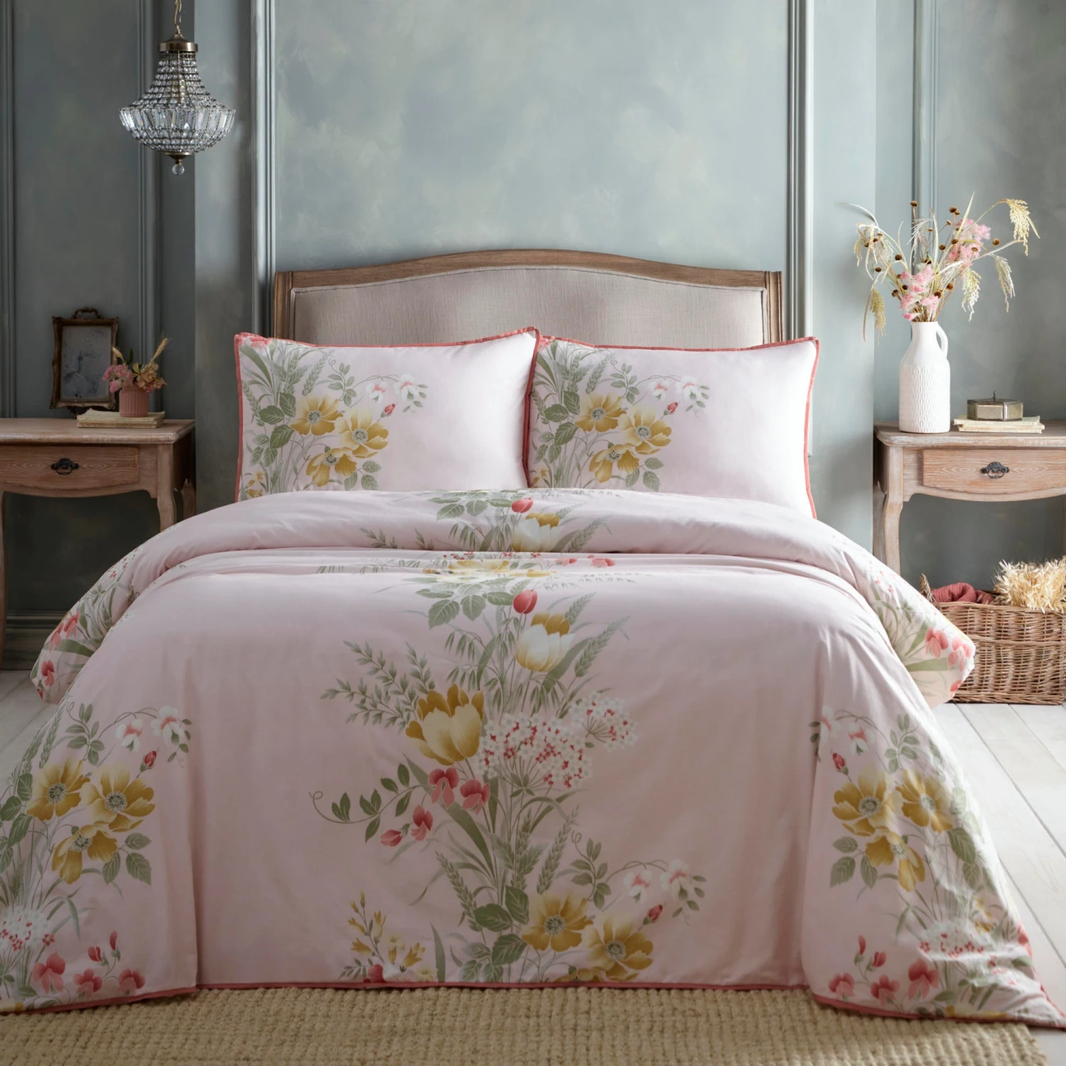 Add a touch of sophistication to your bedroom with this stunning, digitally printed, hand painted floral from Appletree. Produced on a gorgeously soft, 200 thread count, 100% Cotton sateen. The bedding set is piped for the perfect finishing touch.
