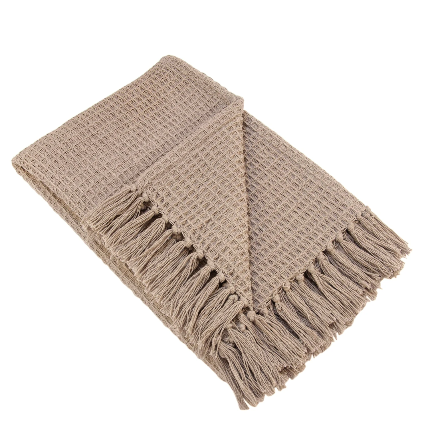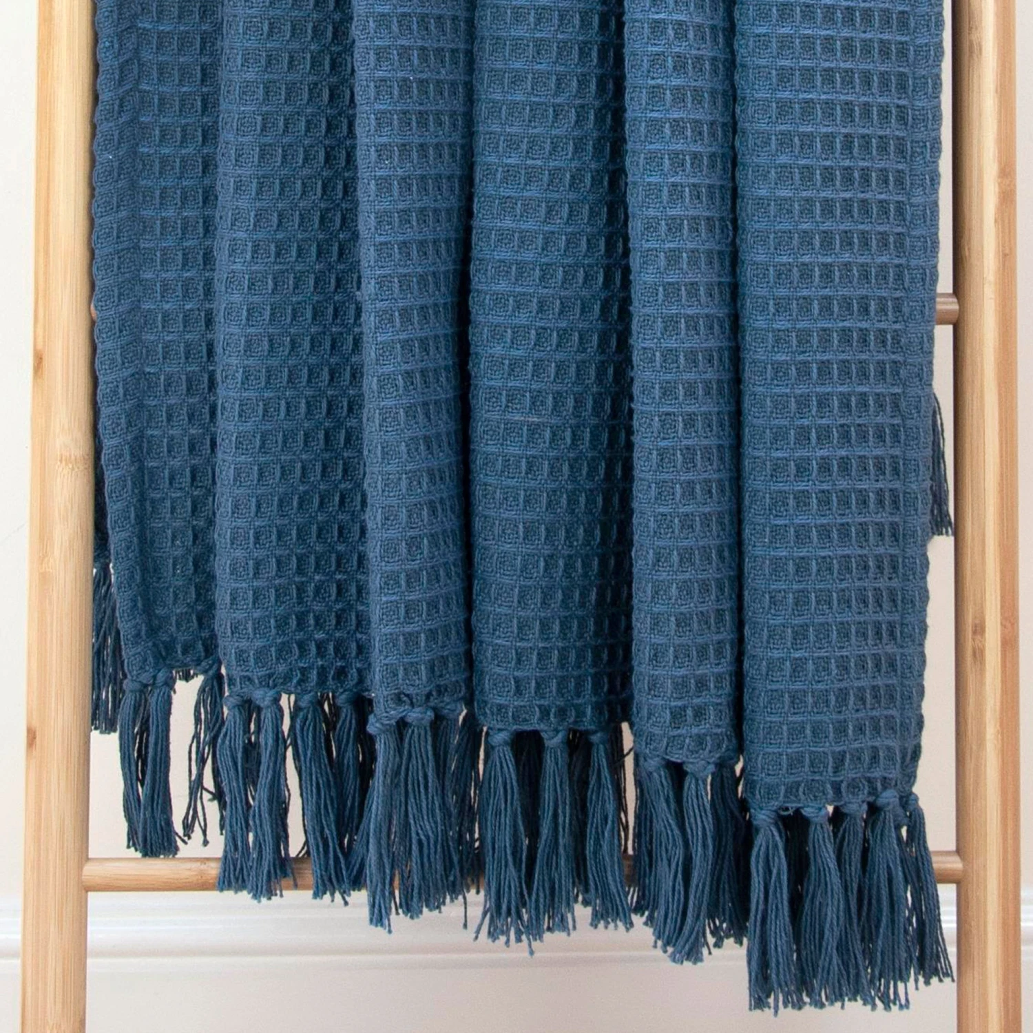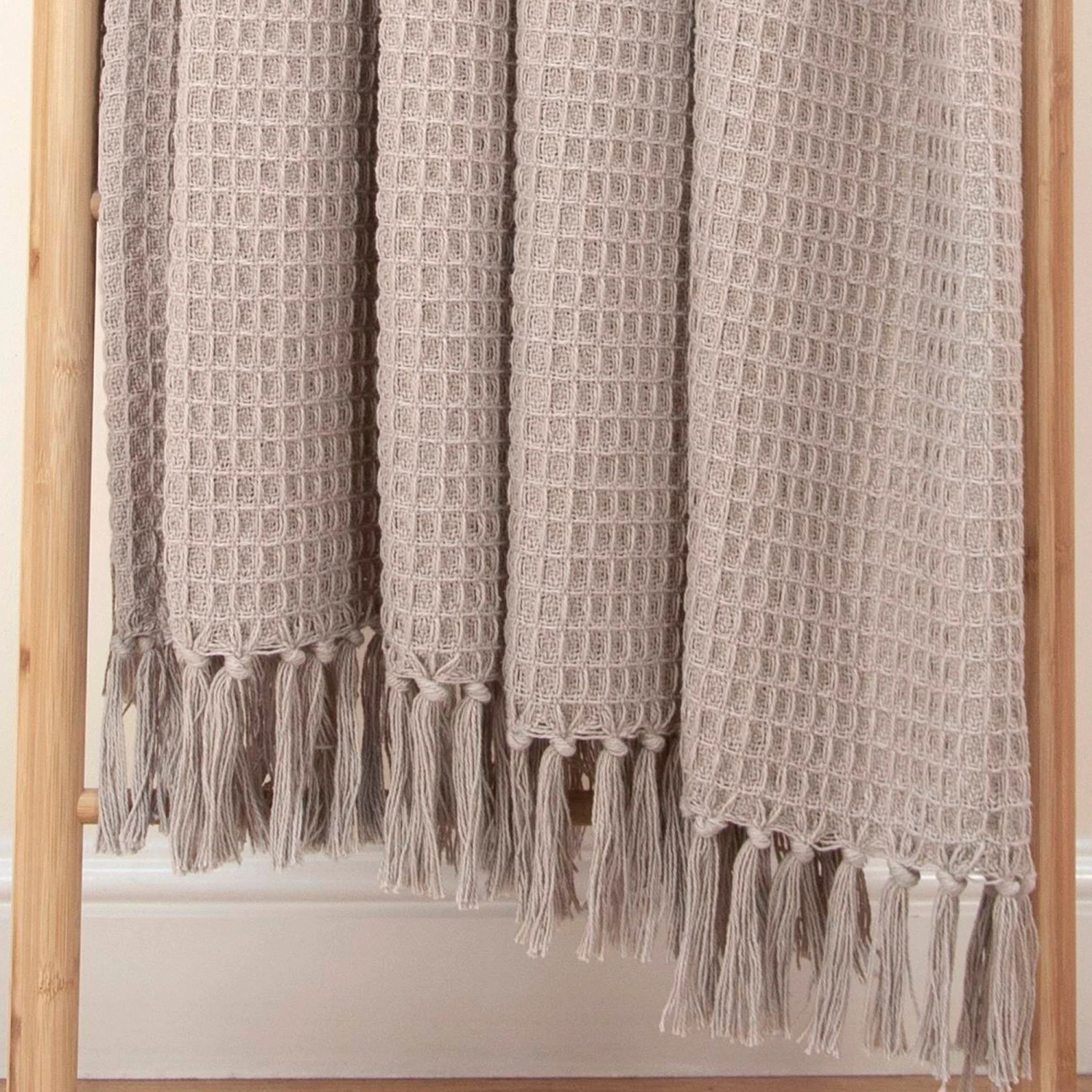 A striking waffle pattern has been woven to create the perfect addition to any room in your home with these matching cushion and throw design. Tassels on each end of the throw add a touch of class.