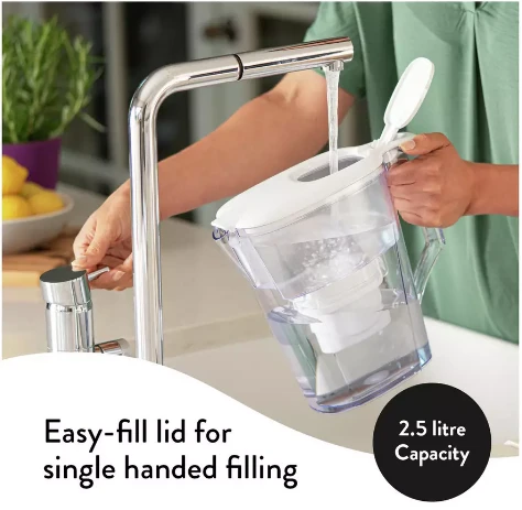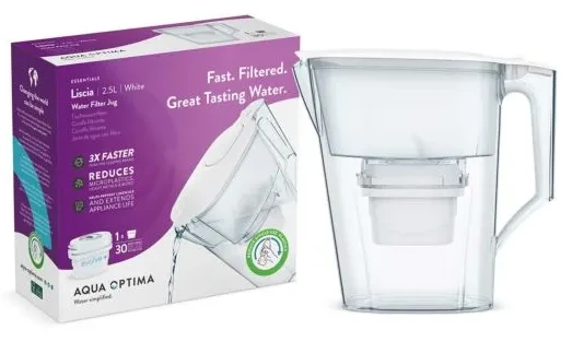 Aqua Optima Liscia Jug, 2.5litres capacity, Fridge door fit and Easy fill lid.