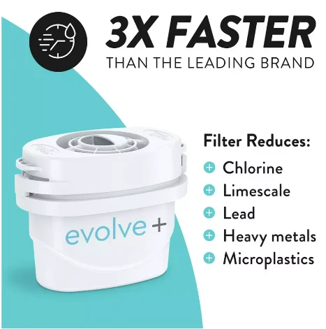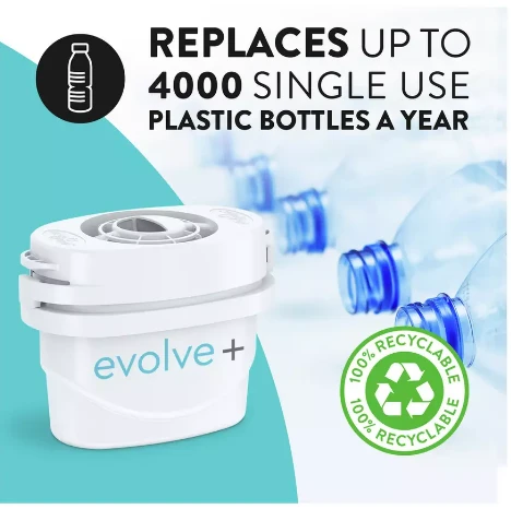 Patented filtration system reduces impurities like micro plastics, chlorine and limescale from tap water to produce better tasting hot and cold drinks and extending the life of your appliances. Better for the environment than single use plastic bottles and 100% recyclable via Terracycle. Evolve+ filters provide up to 1 month/100 litres of purer, great tasting filtered water.