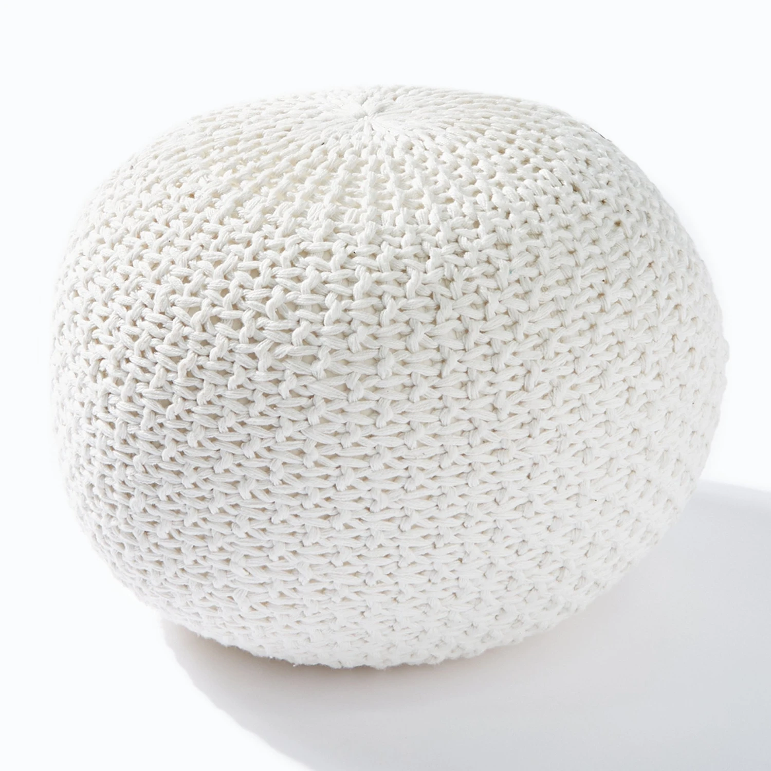 A pouffe that will compliment a diverse array of interiors and rooms. This pouffe not only looks fabulous but it is also versatile and can double up as an extra seat. So, kick back and relax with this pouffe. Finished in a natural knit design.