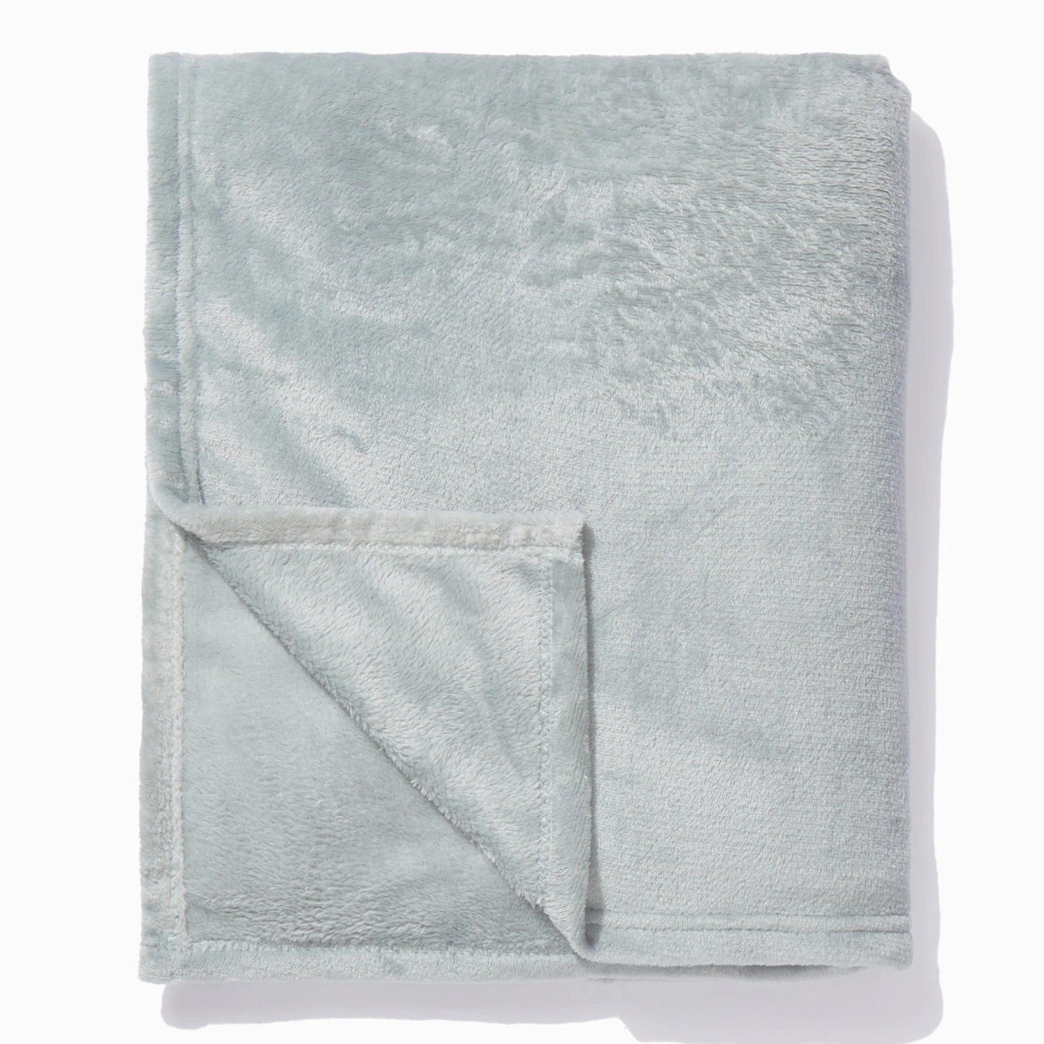 At Home Powder Plush Plain Throw Sage – 150x180cm