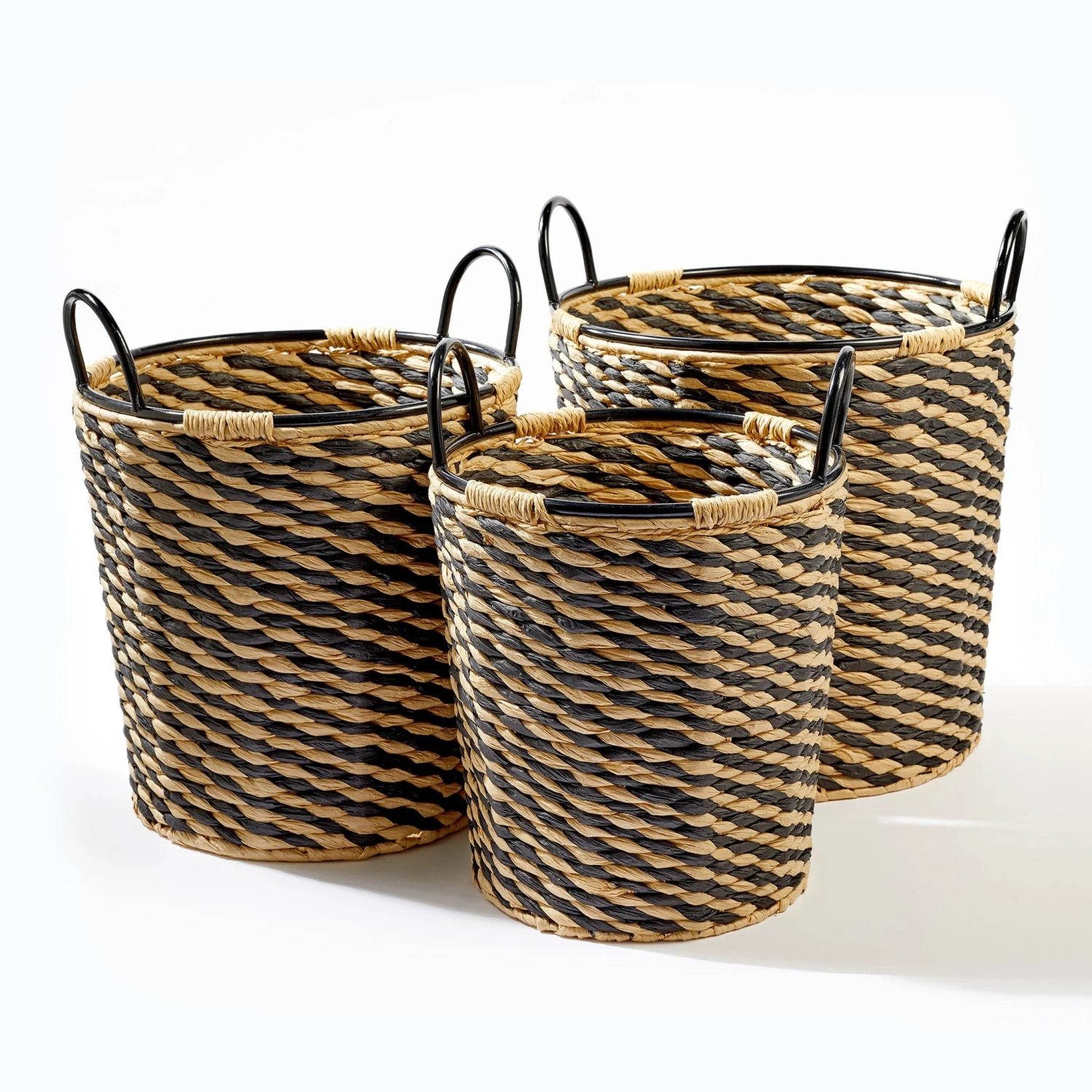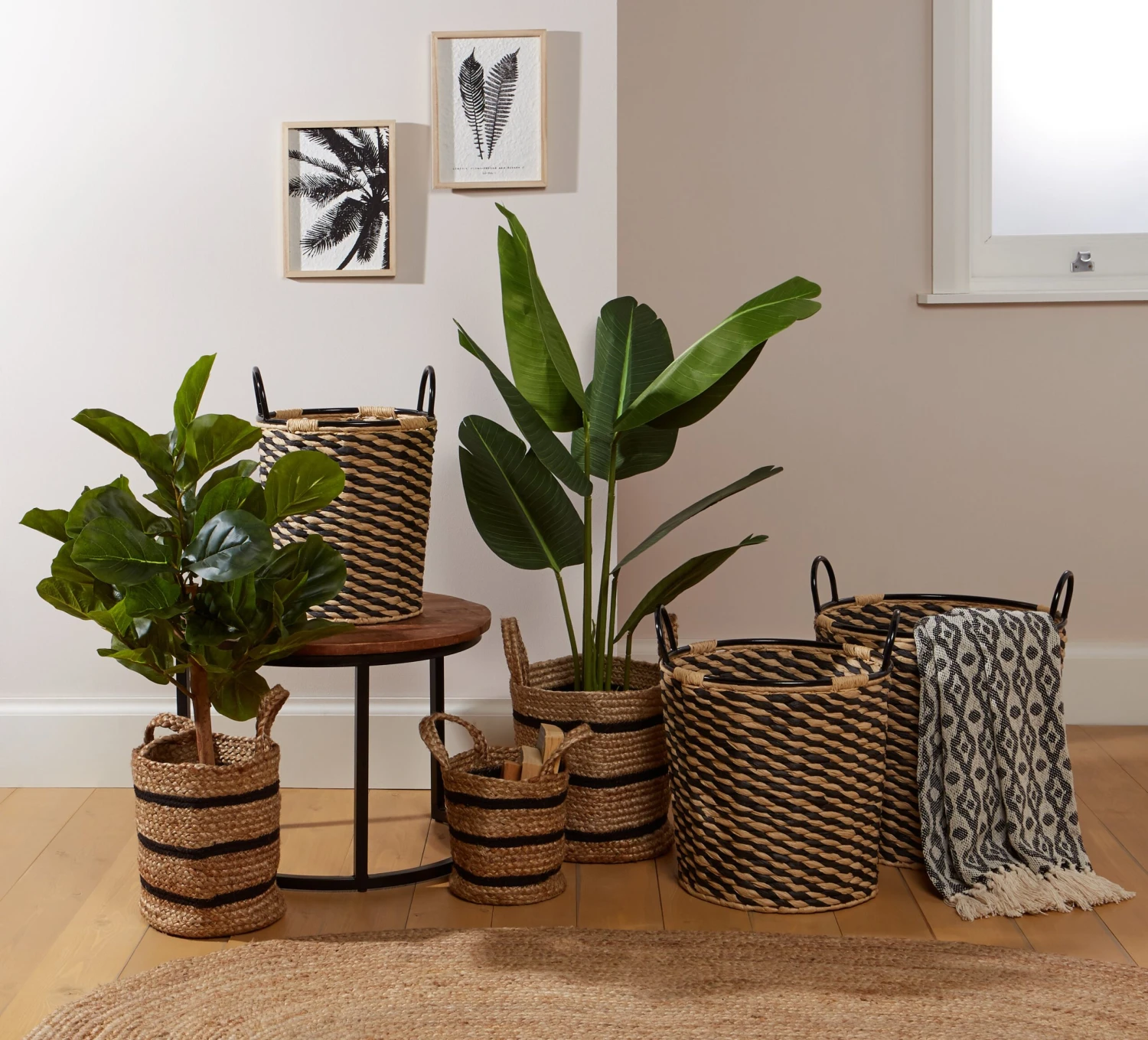 Keep dirty washing neatly tidied away in this stylish black and natural laundry basket. In a traditional woven design that will slot seamlessly into any modern bedroom or bathroom, it comes complete with sturdy handles for easy carrying.