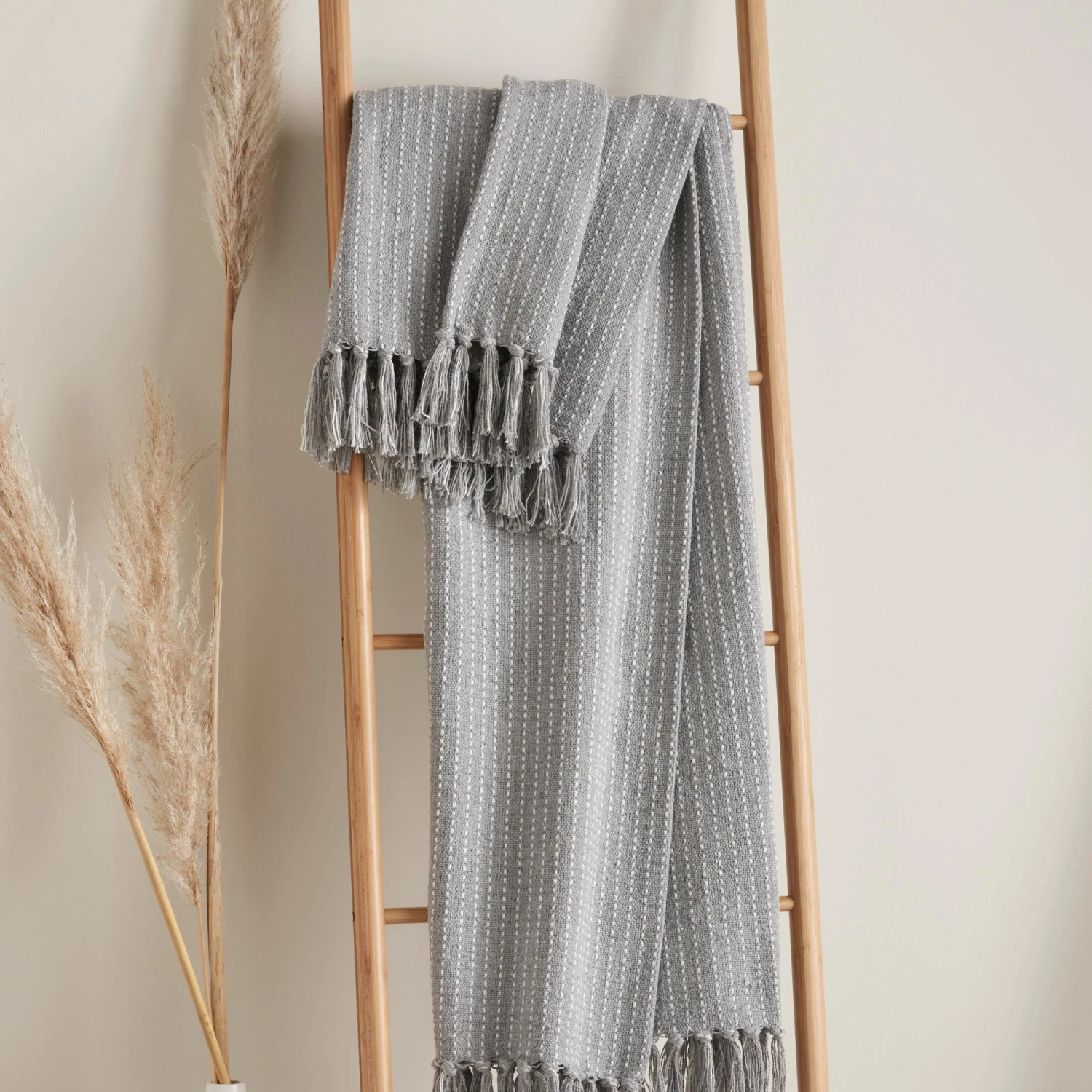 This classic subtle woven stripe fabric will enhance any room – inside or out. Woven in modern colours and with a tasselled edge to the throws, they look sensational in a variety of settings. They are made from 100% recycled cotton rich mixed fibres, so they are perfect for those of us who love our world as much as we love our homes.