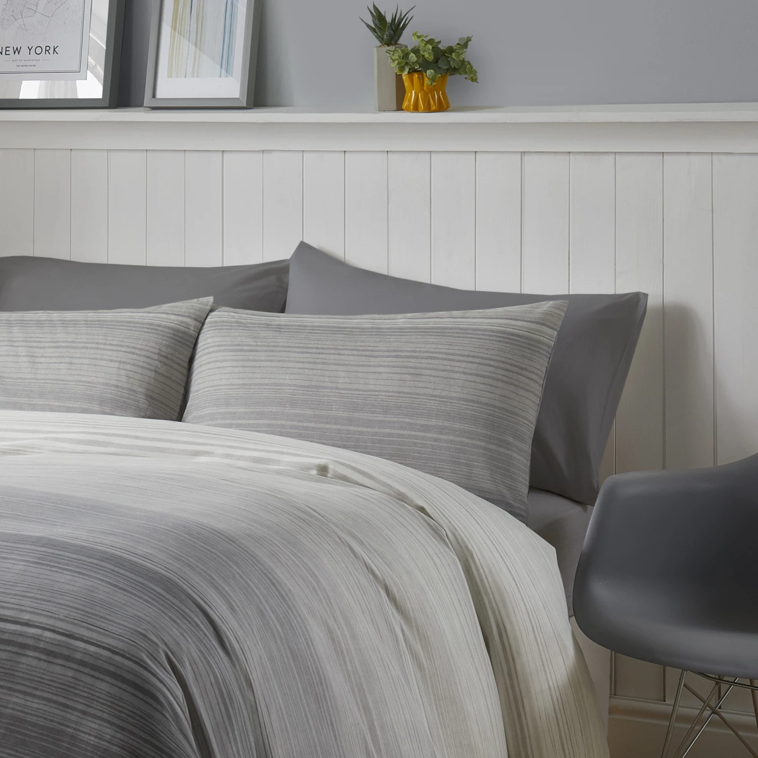Subtle shade changes work fantastically together to create this ombré striped bedding from Fusion Home. Printed on to an easy-care poly cotton, this bedding comes complete with matching pillowcase(s) and is sure to enhance any bedroom with it’s simple but stunning style.