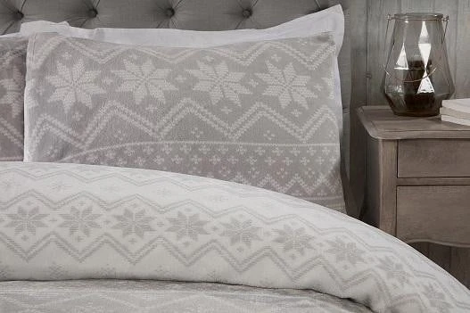 Create a stunning seasonal look this season with this festive set. Crafted from incredibly soft fleece, the set is perfect for snuggling up under on those Winter nights. The set features a classic fairisle design and is available in a contemporary grey offering. The set is fully reversible, The set is the perfect Winter essential, combining amazing design with incredible warmth and comfort.Â