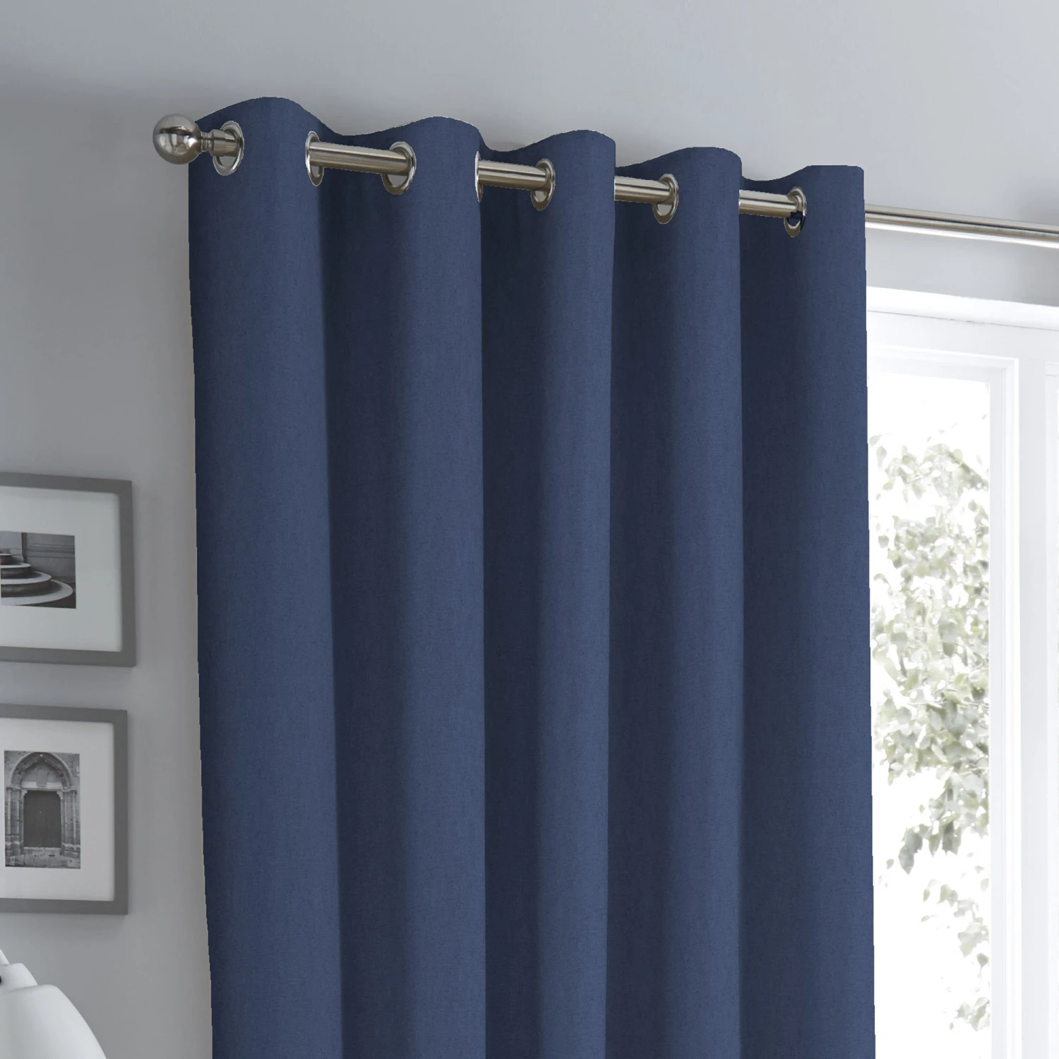 A simple, classic, semi-plain blue pair of curtains made with soft 100% cotton. Featuring brushed steel eyelets and are fully lined to filter the light coming through the window.