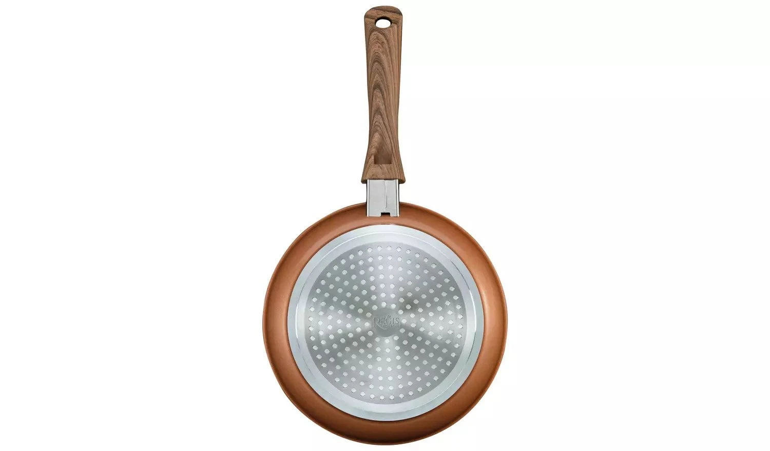 Scratch resistance surface. Soft grip hand sculpted wood-styled Bakelite handle. Forged Aluminium with steel induction base. Excellent durability. Increased heat absorption.
