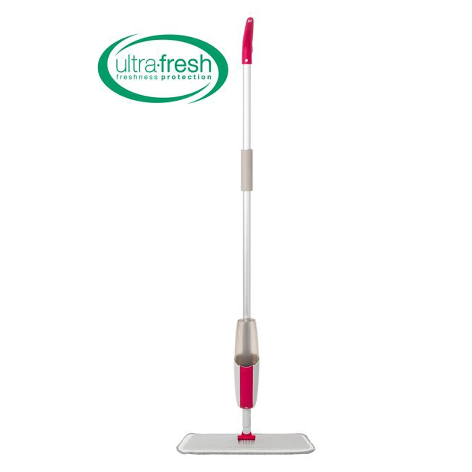 Keep your floors clean and fresh with this Kleeneze Spray Mop, treated with Zinc Pyrithione to eliminate bacteria build-up and nasty smells. Simply fill the 300 ml cartridge and use the spray function to add water to the mop for a thorough clean without hassle. The mop is lightweight but durable, with an aluminium pole and ergonomic handle for added user comfort, while its microfiber mop head pad locks in dirt and grime effectively, leaving your floors brilliantly clean with a sparkling shine.