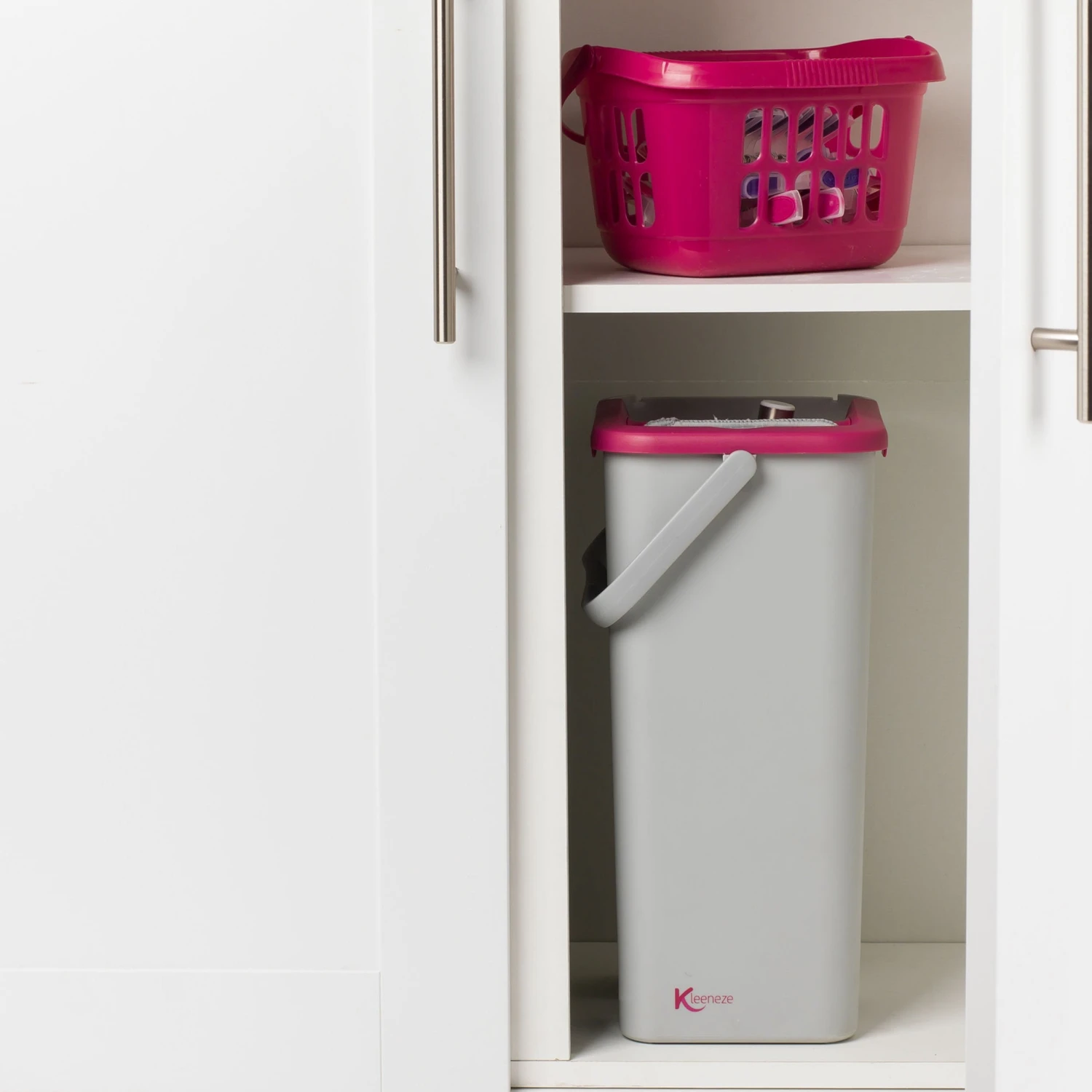 Clean a variety of floor surfaces with the Kleeneze flat head mop and bucket set, a must-have in any home. Thanks to the slimline, 180° swivel mop head you can easily tackle hard-to-reach areas then after use, pop it into the washing machine for an effortless clean. With a built in wringing function and separate soaking compartment, the handy set makes everyday chores a breeze. Complete with a compact design for convenient storage, the Kleeneze set is a stylish addition to any cleaning cupboard.