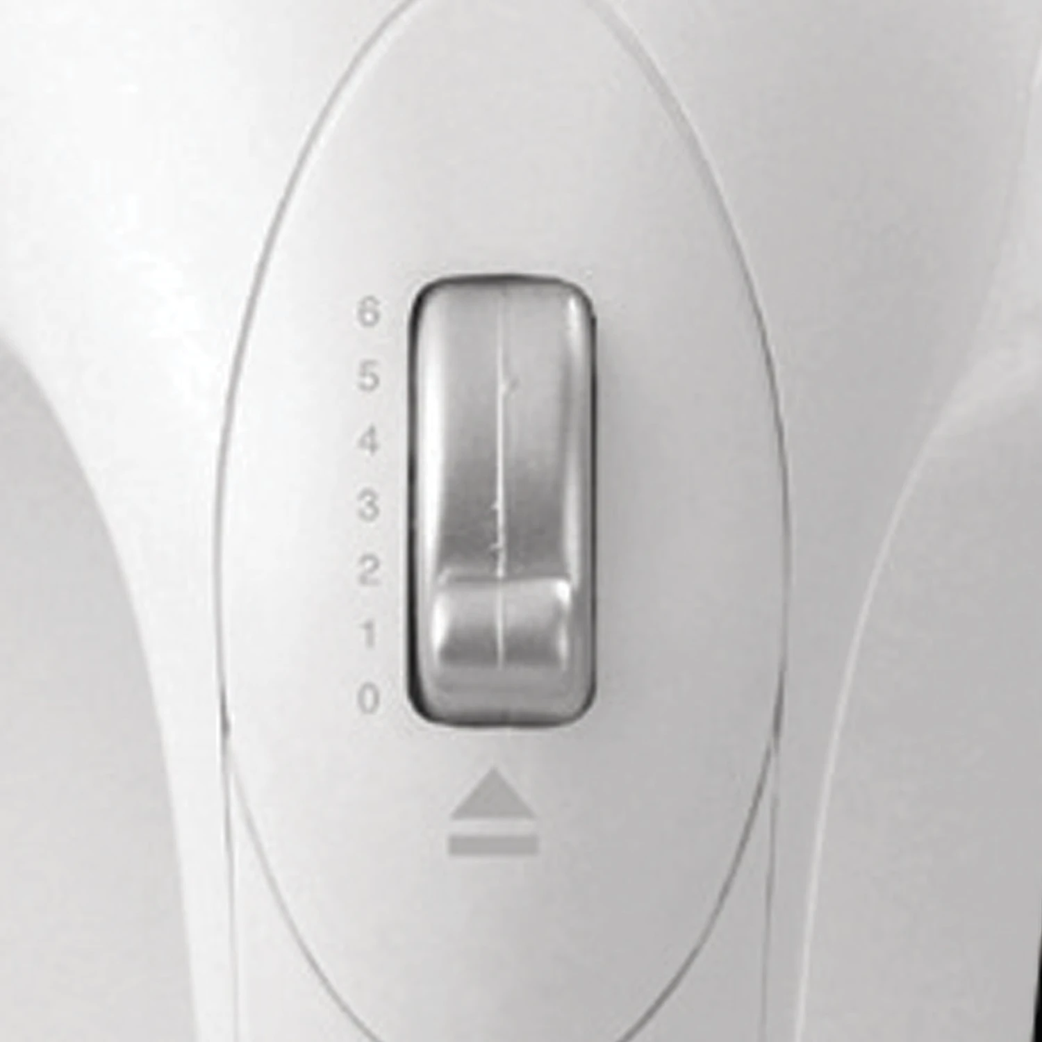 Use the Russell Hobbs Food Collection Hand Mixer to mix egg whites, cake mixture and batter to optimum consistency. The Russell Hobbs Food Collection Hand Mixer comes in a solid white glossed body and features an easy release button for simple beater removal. The six speed settings mean that you can select the appropriate speed for the food type and create accurate results every time. The Russell Hobbs Food Collection brings everyday style and value to the kitchen.