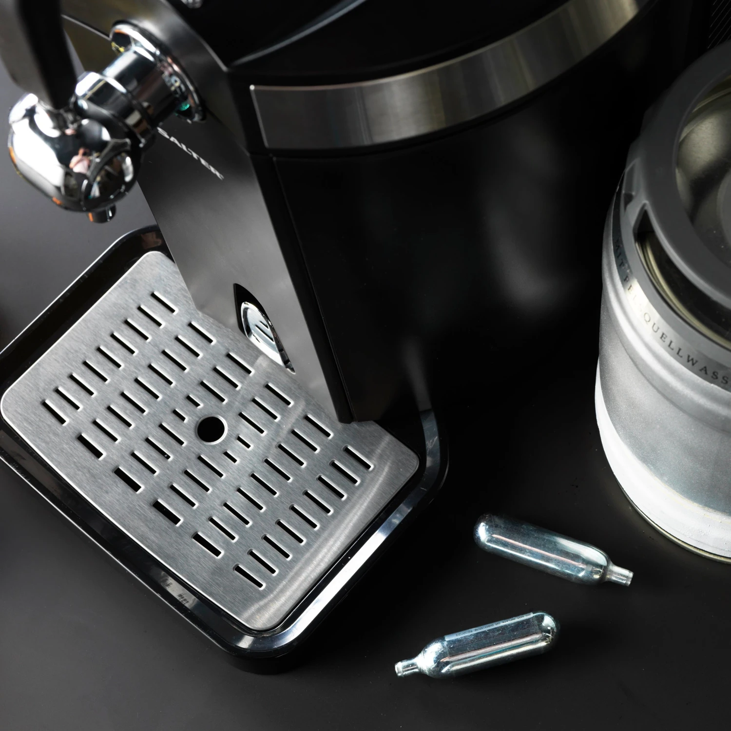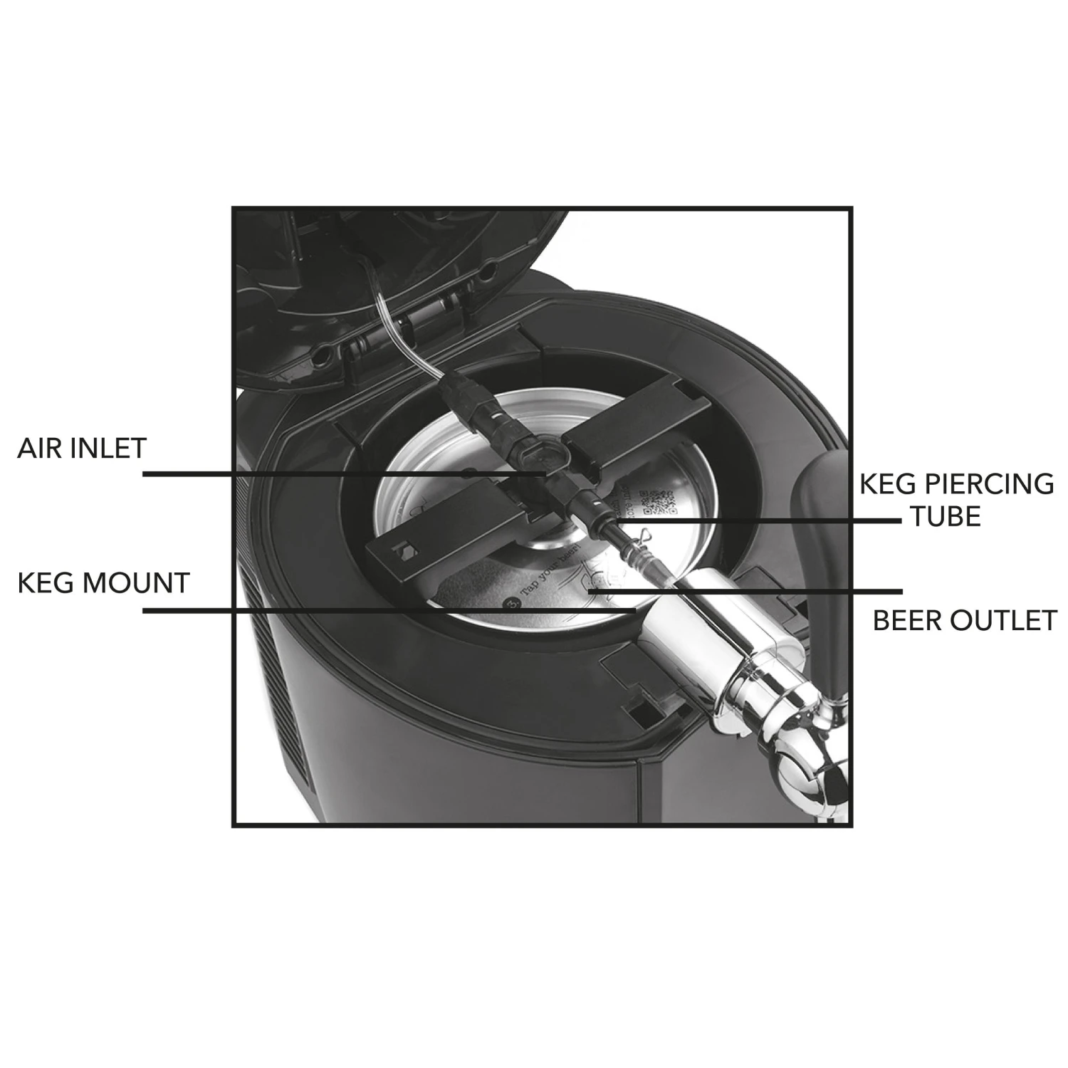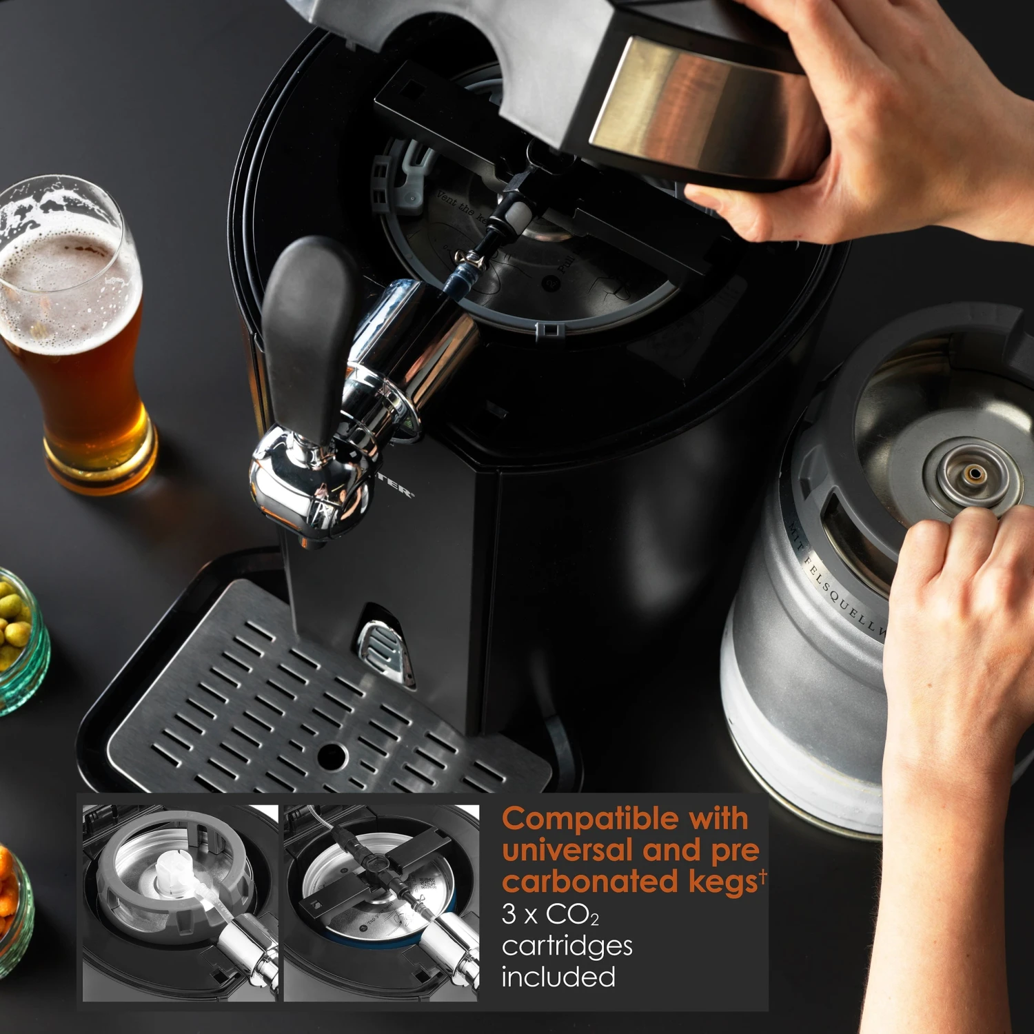 Enjoy ice-cold beer and experience the pub at home with this Salter Professional chilled draught beer dispenser. This all-in-one universal beer tap is compatible with both pre and non-carbonated 5L kegs for brewery quality beer in seconds. For non-carbonated kegs simply use the CO2 attachment and included cartridges to bring the bar home. Complete with a removable drip try and an integrated cooling system, this freestanding dispenser has a sleek design to compliment any kitchen table or worktop.