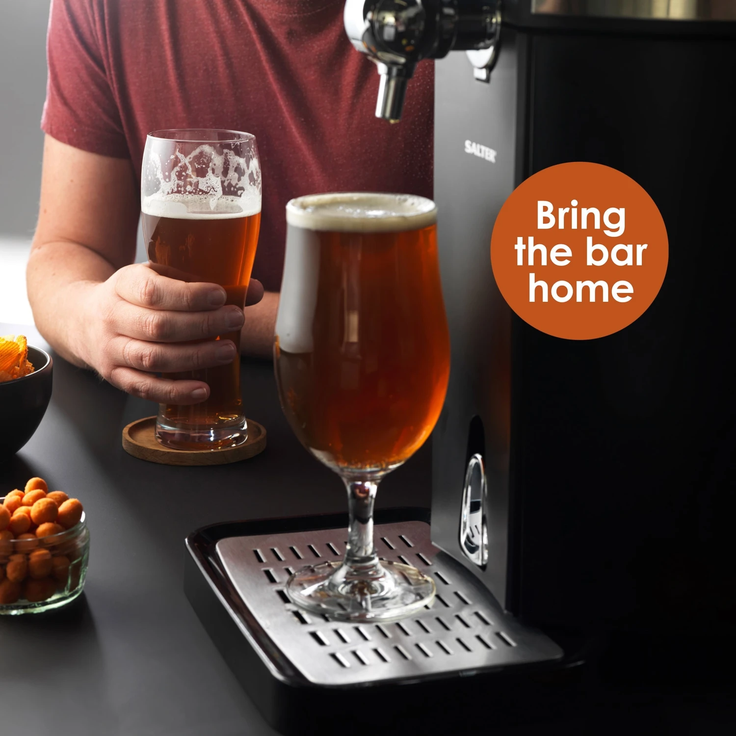 Box contents: 1 x Salter Professional Chilled Draught Beer Dispenser, 1 x CO2 Attachment, 3 x CO2 Cartridges, 1 x Removable Drip Tray