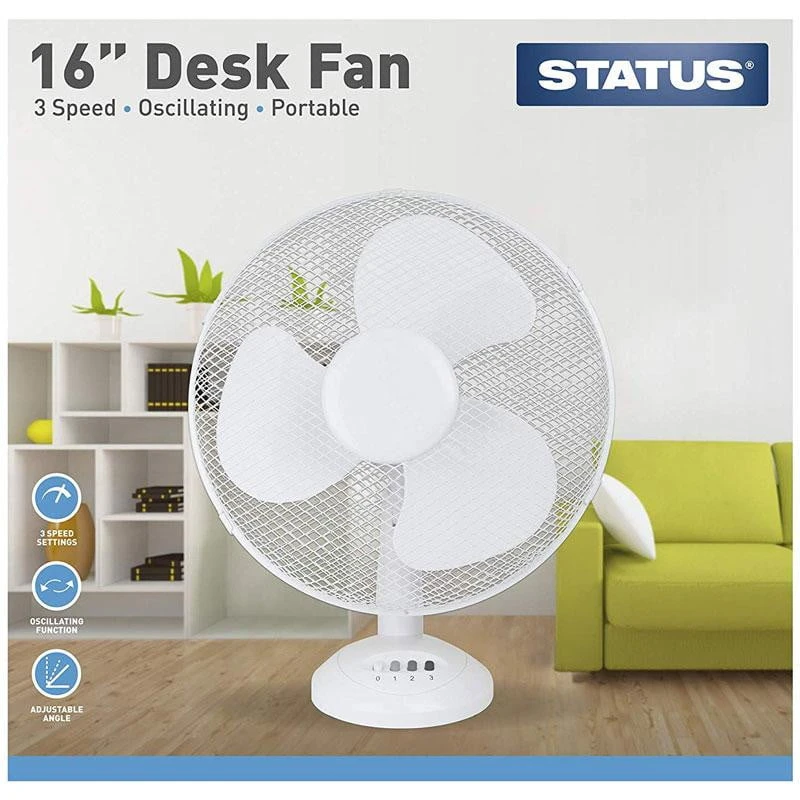 With 3 speed settings and an oscillating, adjustable head this 16″ Desk Fan is perfect for your home office, bedroom or room of your choice.