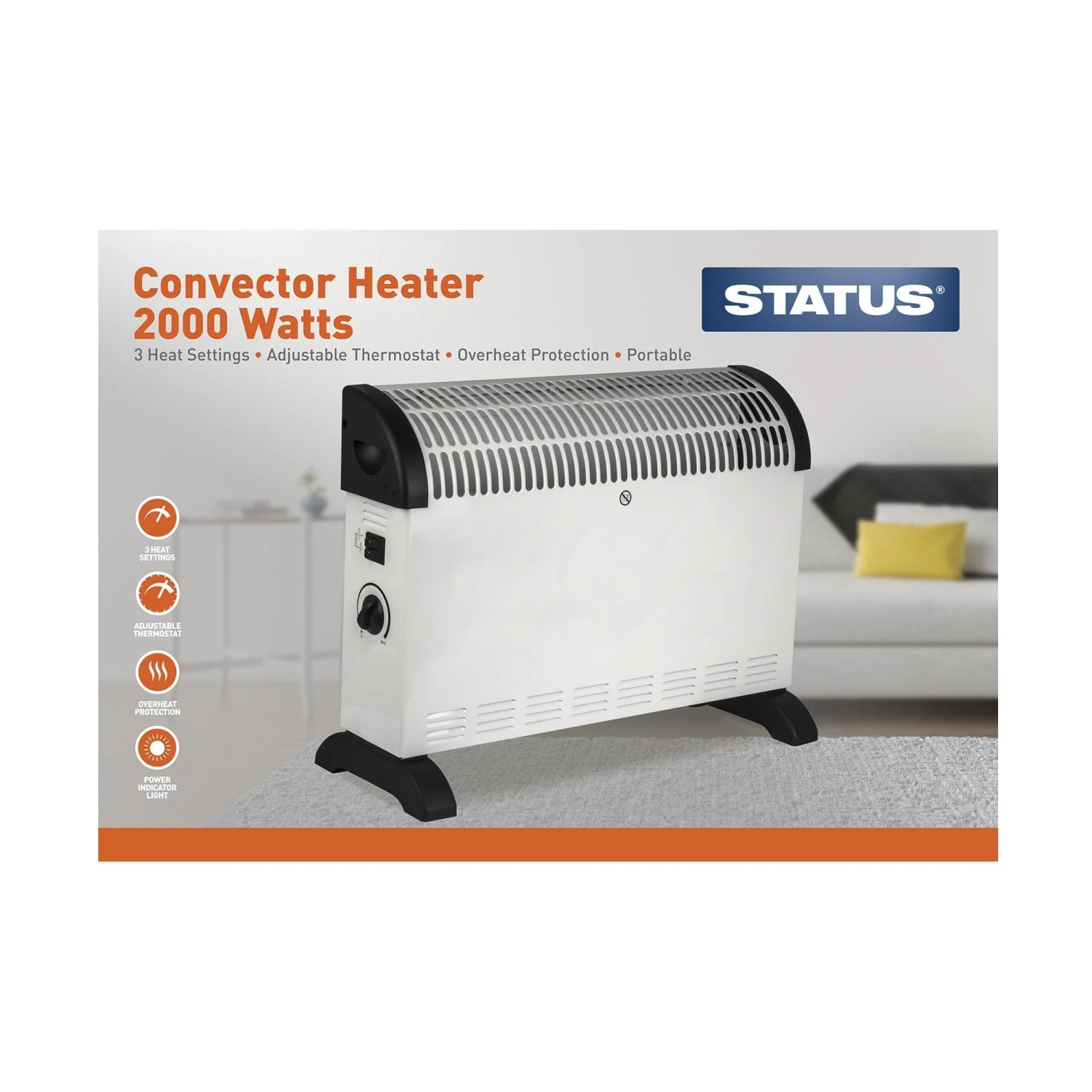 750W-1250W-2000W- 3 Heat Settings-Instant Heat-Adjustable Thermostat-Over Heat Protection- Power Light Indicator-Built In Carry Handles- Portable