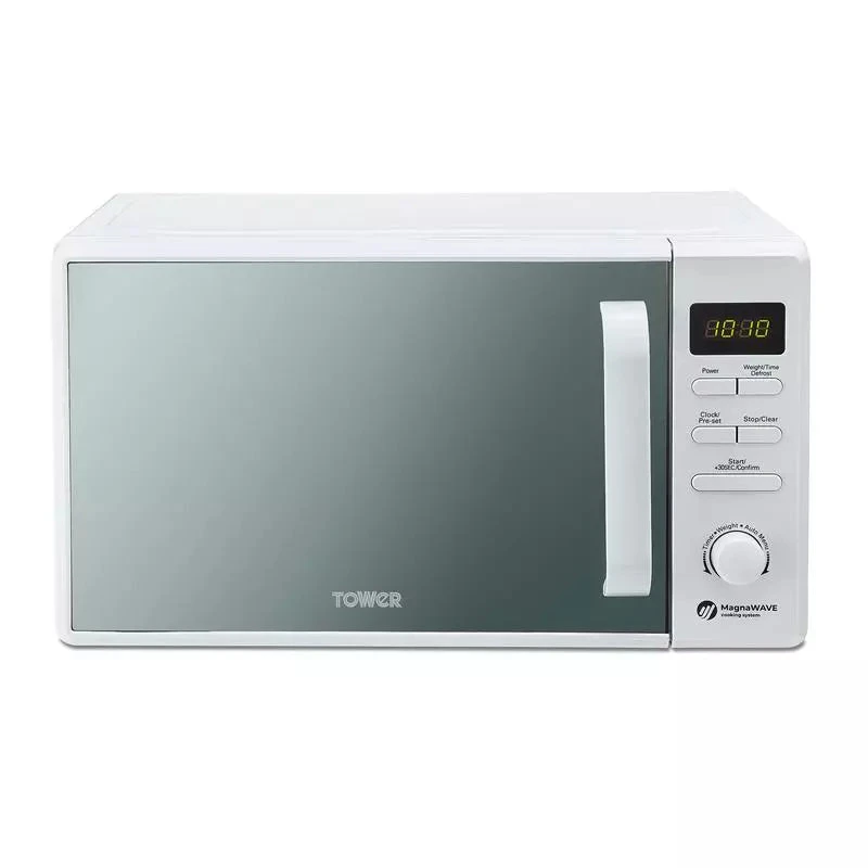 Cook meals at your convenience with the practical and stylish Tower T24037 800 watt, 20 litre digital microwave. Its sleek white finish and beautiful mirrored door will compliment any modern kitchen and your meals can be served up easily in a matter of minutes thanks to the 5 different power levels.