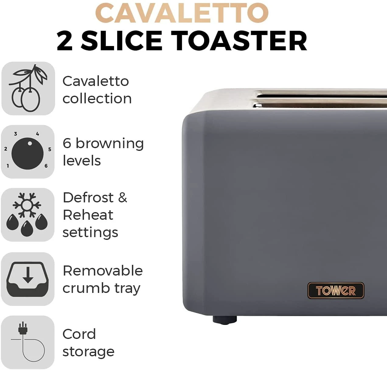 Tower Cavaletto 2 Slice Toaster Rose Gold & Grey