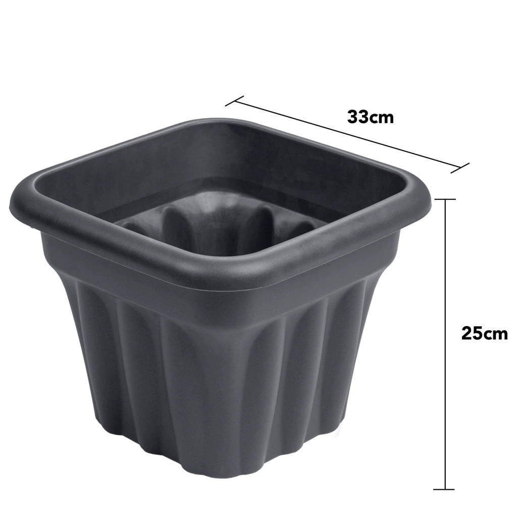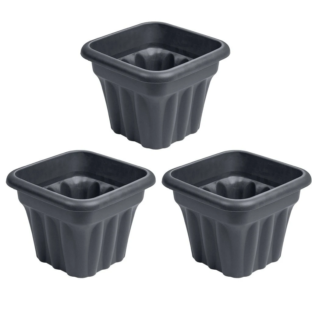 A pack of 3 traditional square planters. This planter is suitable for both indoor and outdoor use being weather resistant and lightweight. Approximately 16 litres capacity. Dimensions:Â 33x33x25cm